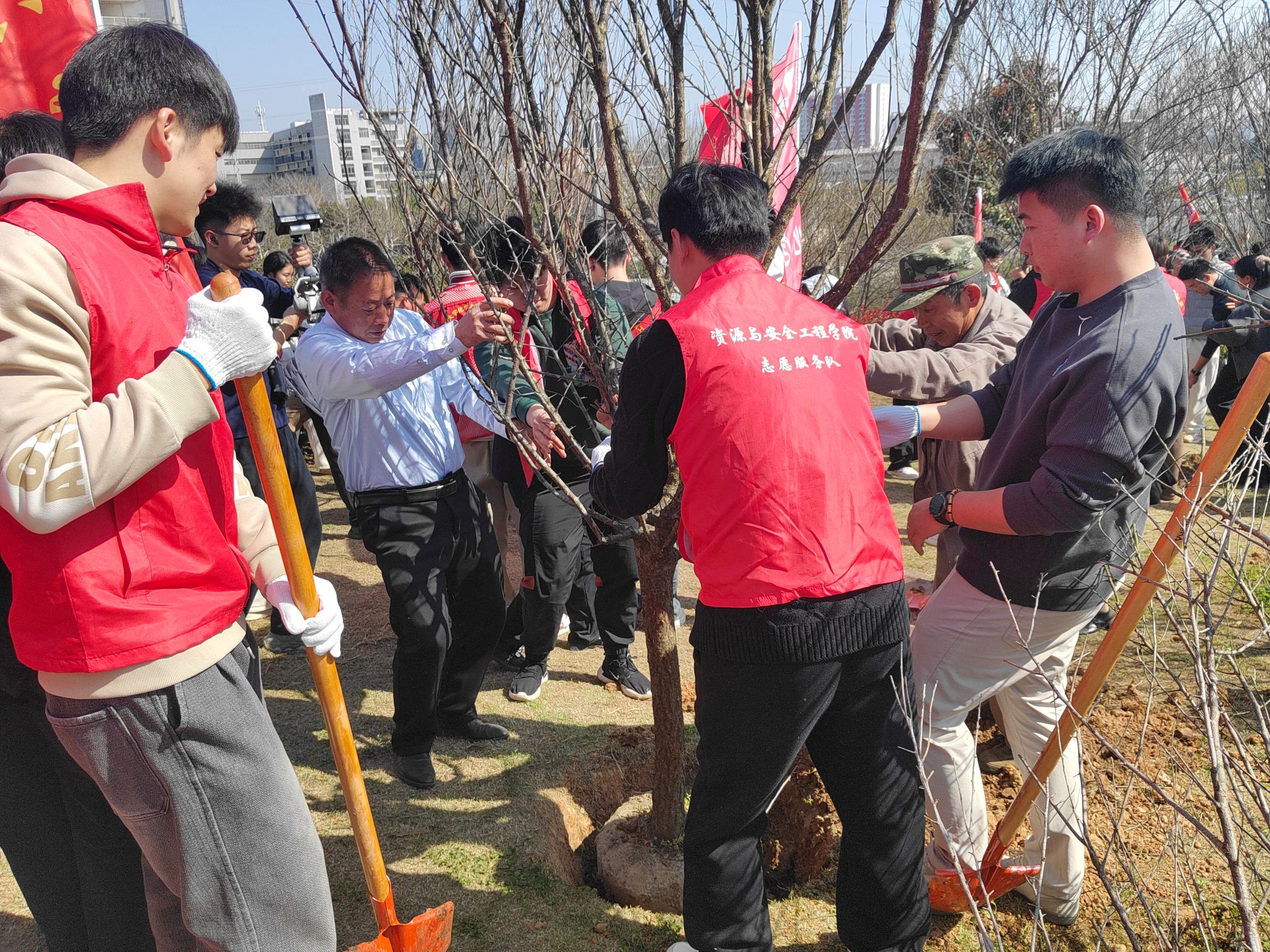 本网讯(通讯员 耿胡锐)3月12日下午,资源与安全工程学院师生前往流芳校区,参加学校第48个植树节主题活动。校长张彦铎,校党委常委、副校长马小龙,校党委副书记李志旭,学校各职能部门负责人出席活动,学院全体辅导员及学生志愿者参与本次植树活动。