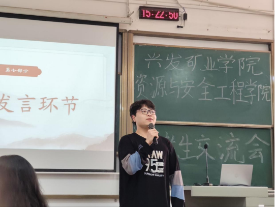 本网讯(通讯员 耿胡锐 樊淑芳)近日,为帮助2025级新生熟悉大学生活,兴发矿业学院资源与安全工程学院团委暨学生会学术调研部在武昌校区二号教学楼W2301教室组织开展“薪火相传,逐梦启航”新老生交流会活动,新生辅导员王祥祥老师、学生团委副书记王艺樨、主席团成员以及部分优秀学生代表出席了本次活动。