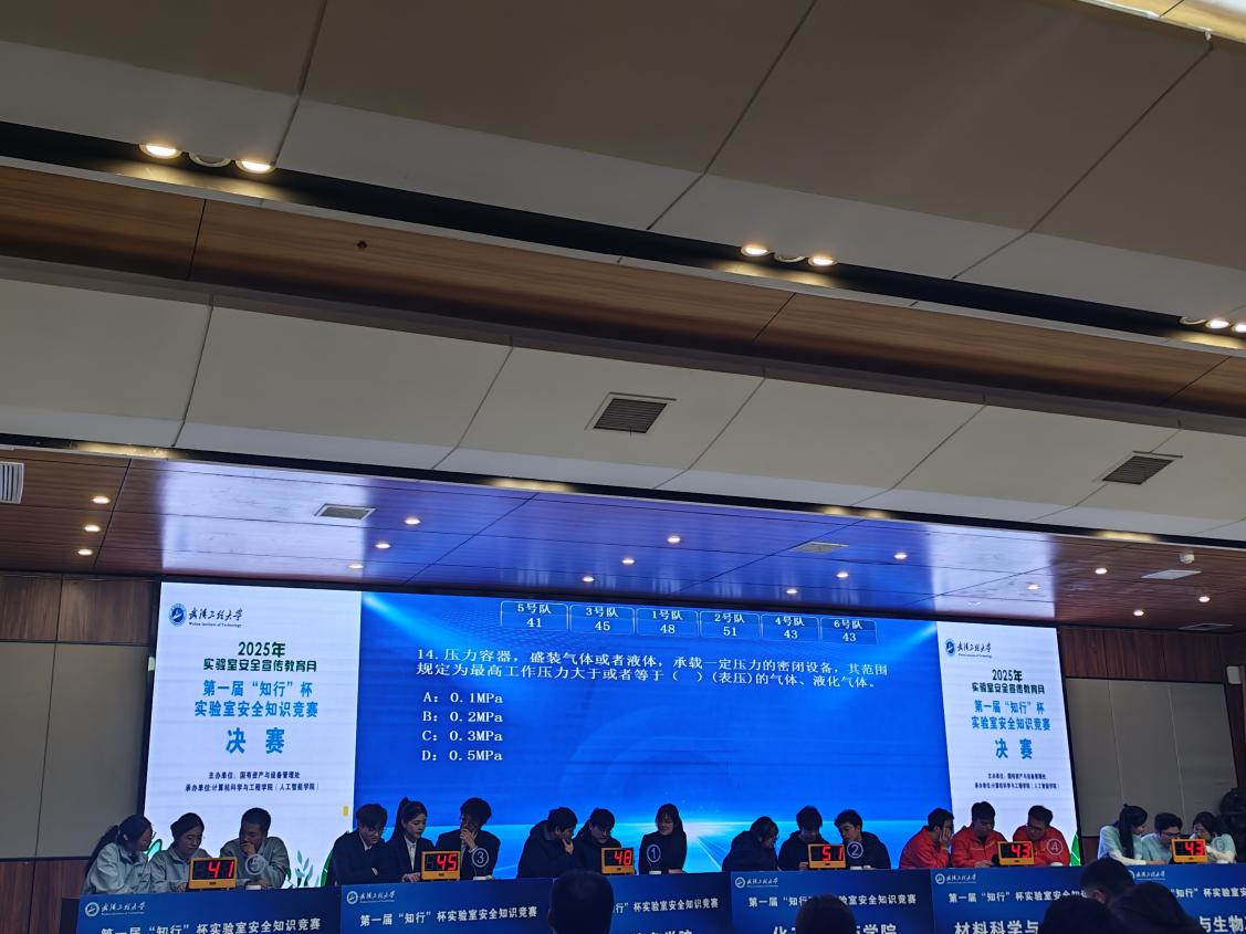 本网讯(通讯员 王祥祥)近日,武汉工程大学首届“知行”杯实验室安全知识竞赛圆满落幕。由兴发矿业学院(资源与安全工程学院)选拔组建的学生代表队,历经校内预赛、决赛两轮激烈比拼,凭借扎实的安全知识储备与出色的团队协作能力,从全校20余支参赛队伍中脱颖而出,最终荣获全校第四名的优异成绩,为学院赢得荣誉。