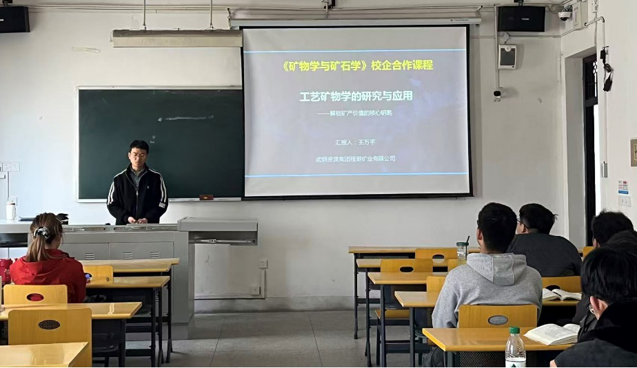 (通讯员 余洪)为深入推进校企协同育人,强化课程教学与行业实践的紧密结合,提升学生对课程的深刻理解。2026年3月25日,在《矿物学与矿石学》校企联合课堂上,特邀武钢资源集团程潮矿业高级工程师王万平走进课堂,为2023级资源循环专业的同学带来一场关于“工艺矿物学的研究与应用”专题报告。本次课程旨在通过引入企业一线专家的实践经验,帮助学生打通理论知识与企业实际生产之间的壁垒,进一步深化对专业知识的理解与应用能力。