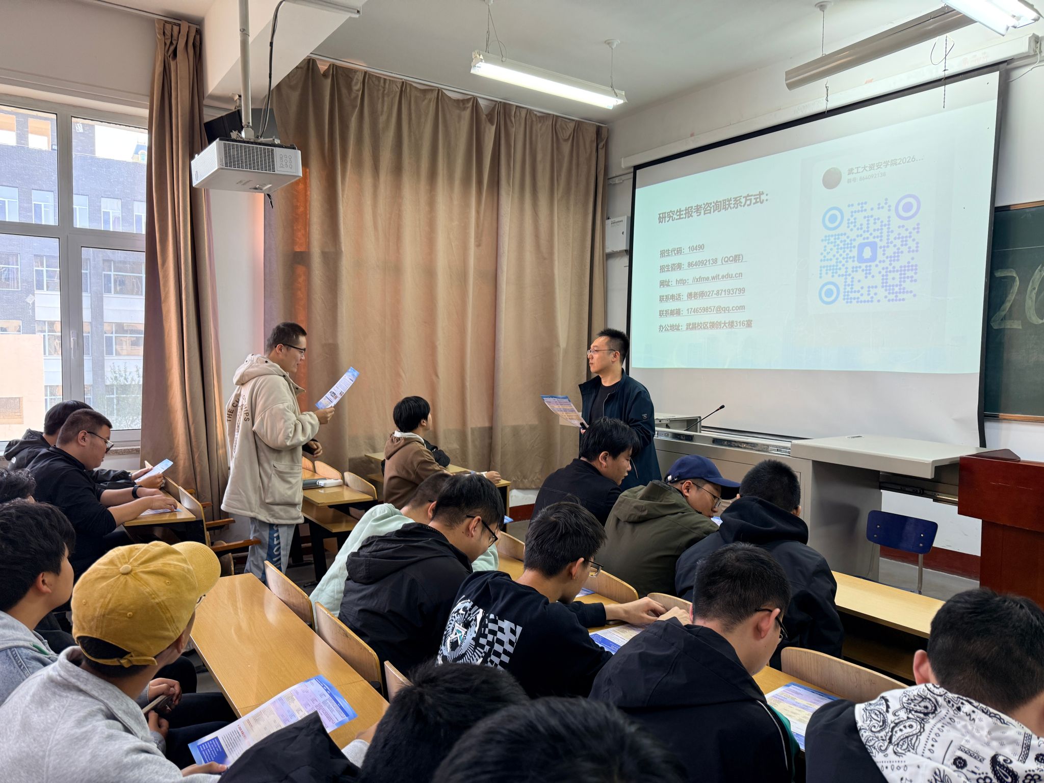 在山西吕梁学院,依托学校在采矿领域的学科背景,宣讲会重点突出了武汉工程大学采矿工程与安全工程专业在城市地下空间开发、矿山环境治理与生态修复等应用领域的科研实力与特色课程设置。宣讲老师表示,欢迎具有不同学科背景、怀揣科研理想的同学报考,共同探索资源安全与可持续发展领域的未来。