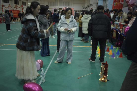本次游园活动亮点纷呈,特色项目尽显学院风采。磷矿“识”践家环节环节,题目涵盖矿石性状等专业内容,学子们在抢答过程中夯实专业基础,充分展现了资源与安全工程学子的专业素养;“精准投壶·平安纳福”将传统游戏与专业精神相结合,要求参与者精准投壶,寓意新的一年在学习科研中精准发力、精益求精,现场欢呼声此起彼伏。