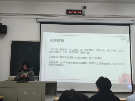 最后团支部负责人进行工作汇报总结并带领大家共同学习讨论,对生活和学习中出现的方方面面的情况予以表明,全体团员紧密联系个人思想、学习、生活实际,逐一进行自我剖析,开展诚恳的批评与自我批评,真正做到查找差距、明确方向。