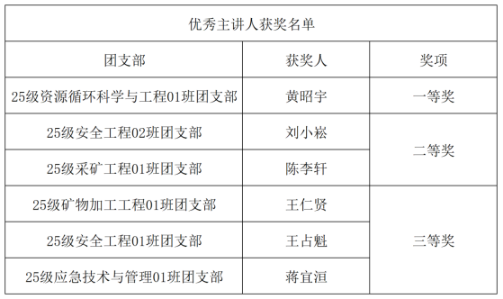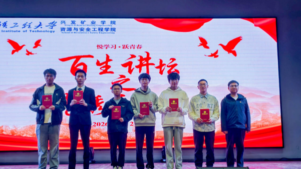 本网讯(通讯员 耿胡锐 王彦婧)为深入学习贯彻党的二十大及历次全会精神,3月30日晚,武汉工程大学兴发矿业学院资源与安全工程学院在武昌校区大礼堂举办了2026年度“悦学习·跃青春——百生讲坛”活动。团委指导老师耿胡锐、2025级本科生辅导员王祥祥老师、主席团成员、本研学生代表,学院团支部代表参加了此次活动。