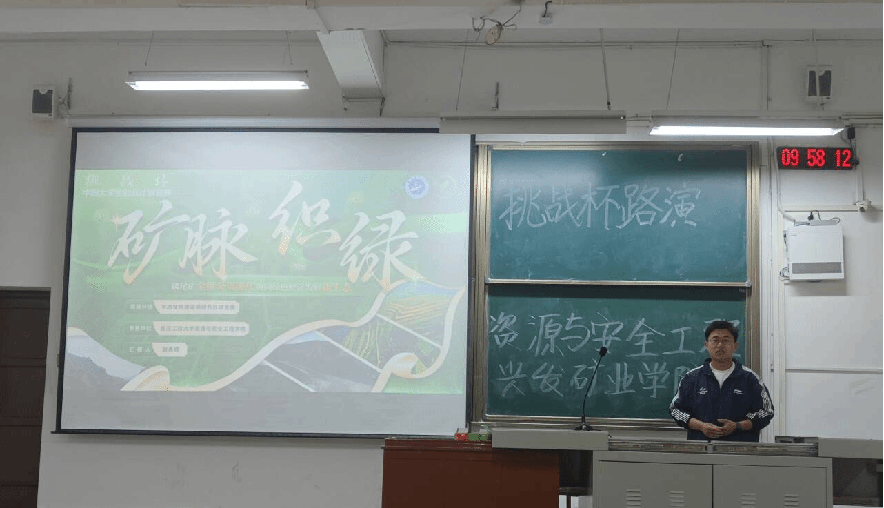 活动现场,“矿脉织绿”“水键合”“智岩先知”等多个重点参赛项目团队依次登台路演。各团队成员围绕磷尾矿绿色治理、零VOC聚氨酯合成、岩体破裂遥感预警等前沿科研方向,详细展示了项目的创新理念、技术优势、应用前景及阶段性成果,充分展现了矿业学子脚踏实地、勇于探索的科研实干精神和青春创新风采,也让现场师生对学科竞赛项目有了更直观、深入的了解。