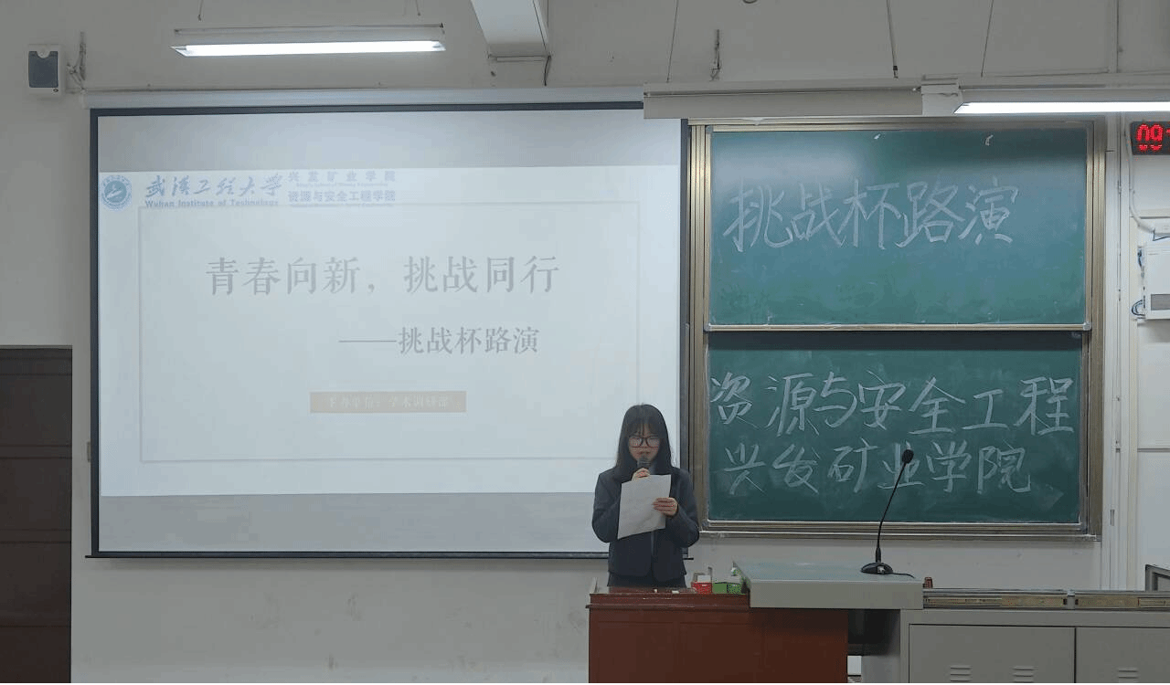 本网讯(通讯员 耿胡锐 樊淑芳)为进一步营造学科竞赛氛围,助力学院“挑战杯”参赛项目提质增效,4 月 16 日上午,兴发矿业学院资源与安全工程学院在武昌校区成功开展 “青春向新,挑战同行” 挑战杯项目路演暨重点项目辅导活动。学院团委指导老师、校外导师、各项目指导老师及团队、本研学生代表参与活动。