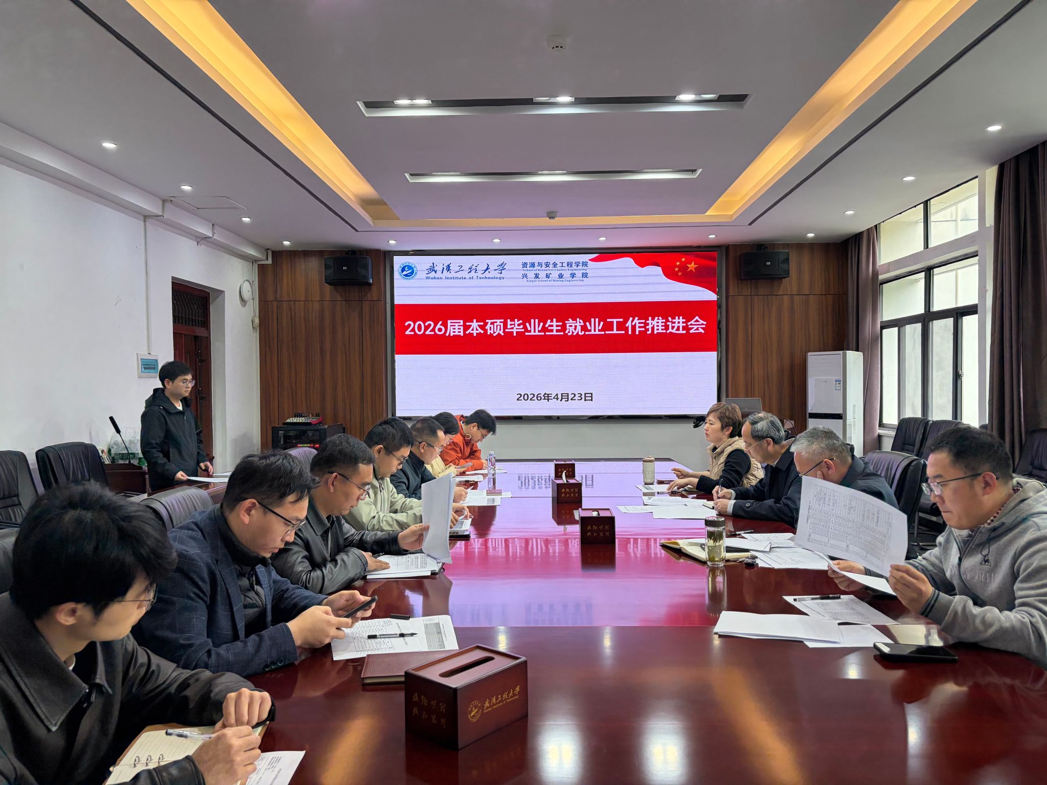 本网讯(通讯员 王祥祥)为补齐现阶段就业工作短板,破解毕业生就业难题,全力确保2026届毕业生充分高质量就业,4月23日,我院召开2026届本硕毕业生就业工作推进会。这是学院本年度召开的第三次就业专题工作会议,聚焦当前学生慢就业、求职滞后等突出问题,进一步压实全员就业工作责任。学院领导班子、各教研室主任、毕业班班主任参会,会议由学院党委副书记李佳主持。